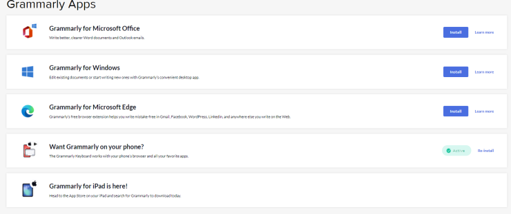 3. Grammarly 앱을 설치 할수도 있습니다 (MS OFFICE, 윈도우 검색엔진, 아이폰 & 아이패드 앱 지원)